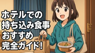 ホテル・旅館 ホテルでの持ち込み食事おすすめ完全ガイド!夕食なしでも安心! こちらでは、ホテルでの持ち込み食事のおすすめメニューや注意点、持ち込む際に押さえておきたいルールなどをまとめました。また、素泊まりや夜食、パーティー、ビジネスホテルでの滞在など、さまざまなシーンに合わせた食事の選び方やアイディアも紹介! ホテル・旅館旅行一般