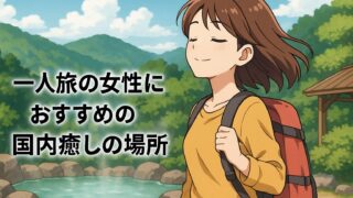 旅行一般 一人旅の女性におすすめの国内癒しの場所|心と体をリフレッシュ! こちらでは、「一人旅の女性におすすめの国内癒しの場所」をテーマに、初心者でも安心して出かけられる癒しのスポットをまとめました。温泉や自然に囲まれた場所、日帰りでも気軽に行ける旅先まで、40代・50代の女性の一人旅にも人気のエリアを網羅! 旅行一般
