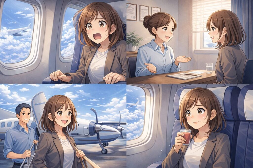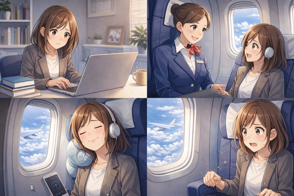 こうした対策をあらかじめ行っておくことで、酔いの不安が減り、飛行機への苦手意識を少しずつ克服していけるようになります。