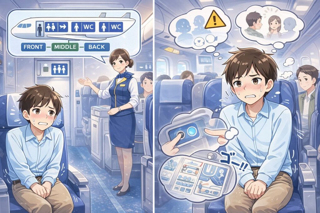 飛行機に乗ると、「トイレに行きづらい」と感じる人は意外と多いものです。狭い空間、タイミングの難しさ、どこにあるのか分かりにくい場所など、さまざまな要素が不安を呼び起こします。