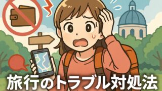 旅行一般 旅行中のトラブルを防ぐ&乗り越える!事前準備と対処法まとめ こちらでは、楽しい旅行を守るためのトラブル対策&対処法をまとめました。事前準備から保険の活用法まで分かりやすく紹介!旅行中のトラブルを未然に防ぎ、もしもの時に落ち着いて対応する方法を解説。盗難・体調不良・旅行保険の使い方まで徹底ガイド! 旅行一般
