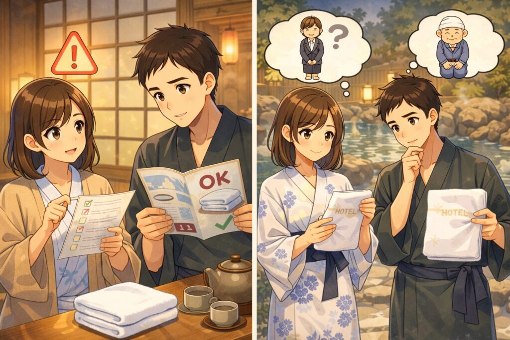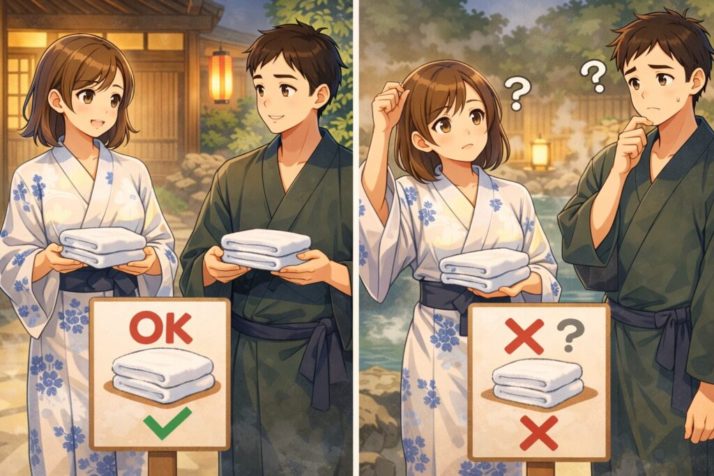- 温泉タオルの持ち帰りがOKかNGかを見分けるポイント