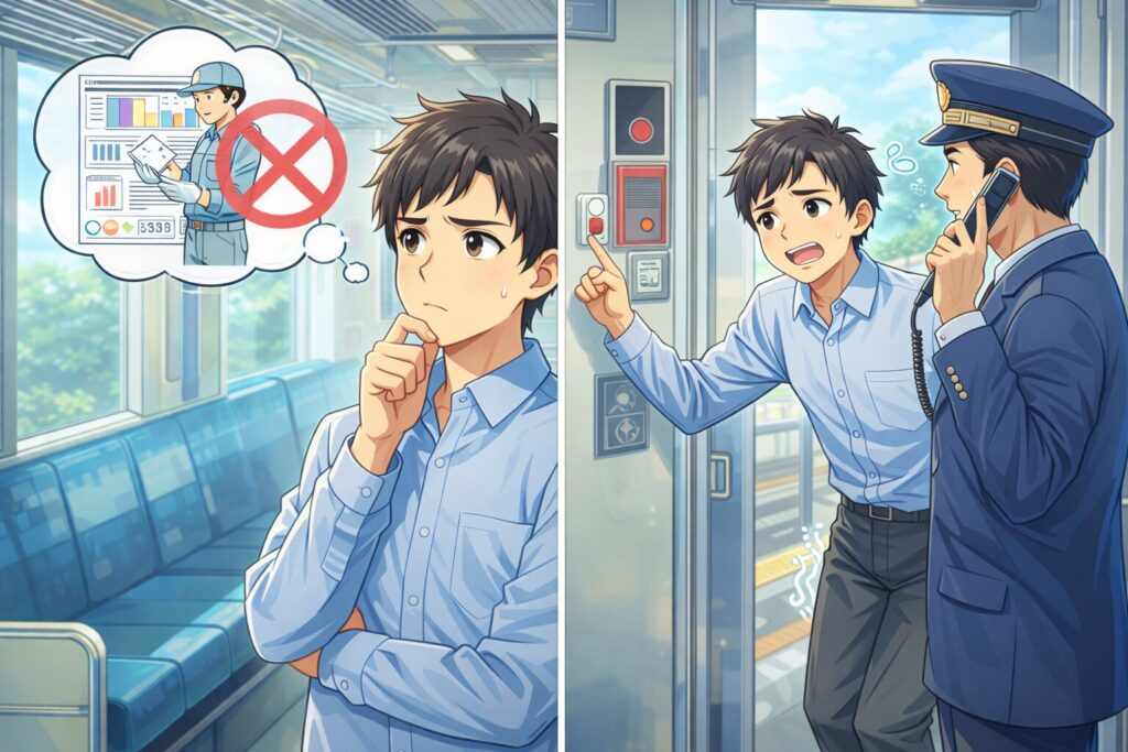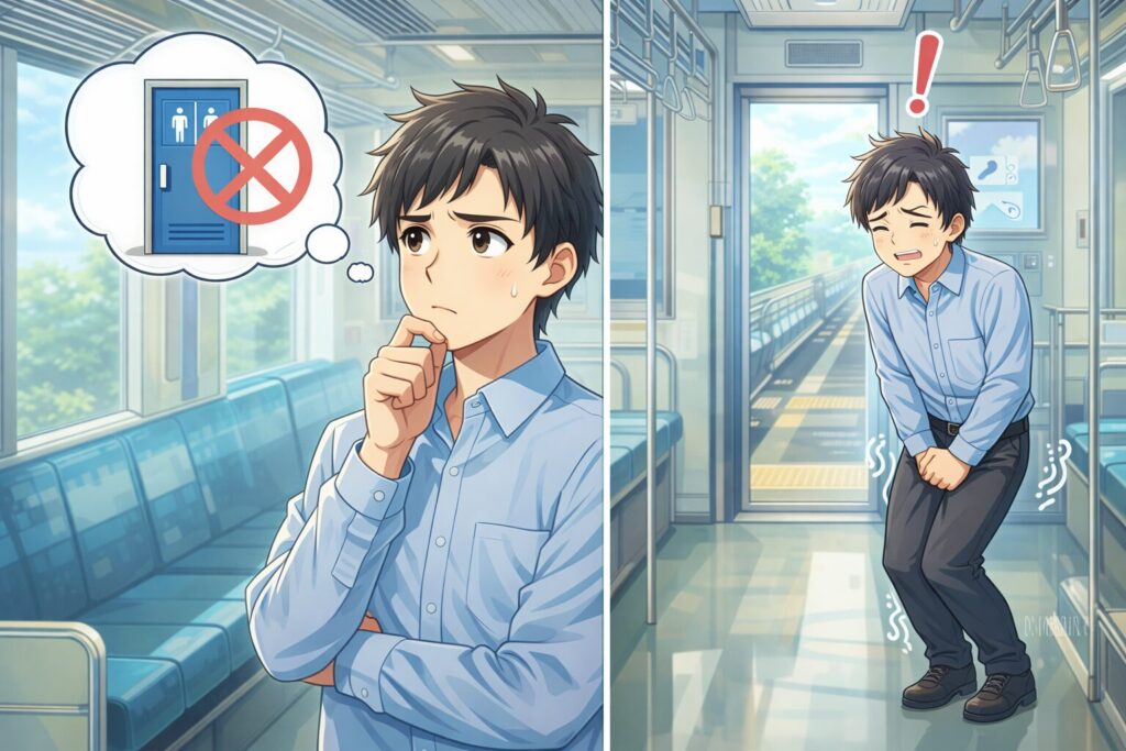 電車に乗っているとき、急にトイレに行きたくなって我慢できないといった経験は誰しもあるかもしれません。特にトイレのない電車では、冷静かつ素早い判断が求められます。